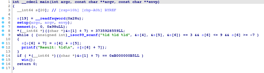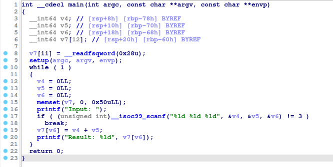 1. p[0] ~ p[4]까지의 입력 값을 더한 후 return 한다.